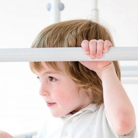 Гімнастичні драбини характеризуються унікальним покриттям сходинок, які, крім стандартних антиковзаючих шин, також мають вставки, які масажують ручки та ніжки дитини під час лазіння. Масажний ефект особливо важливий на ранньому етапі розвитку дитини - він сприяє розвитку дрібної моторики та запобігає плоскостопості.