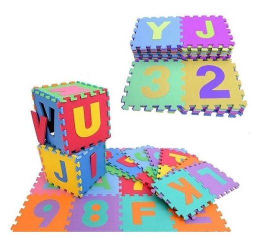 36 частин пінопластового пазла (алфавіт + цифри від 0 до 9)