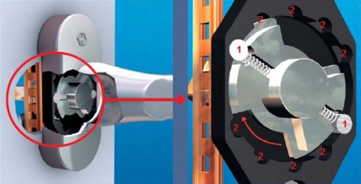 Розріз запірного механізму в ручках Secustic