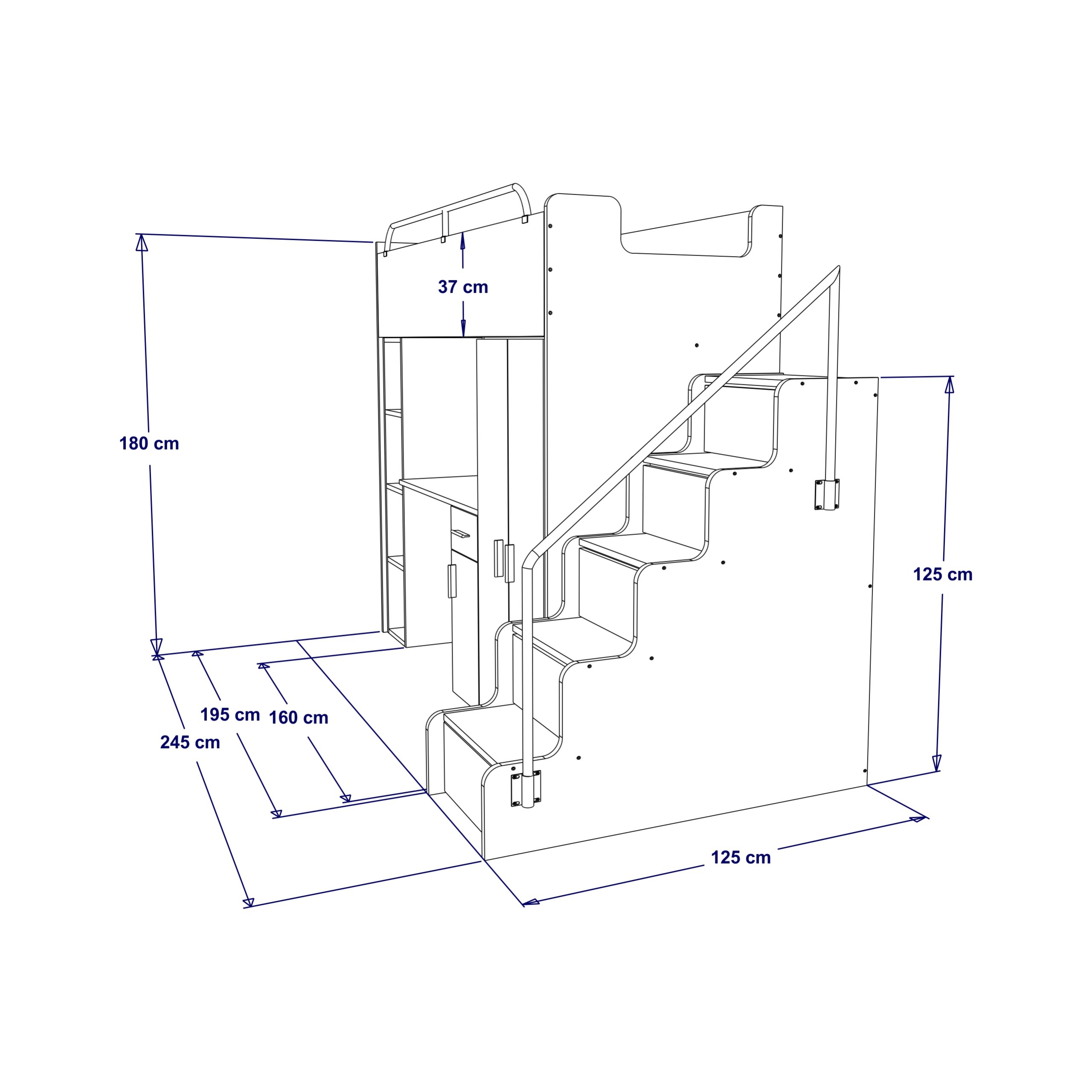 Двухъярусная кровать с шкафом и столом 9-цветов