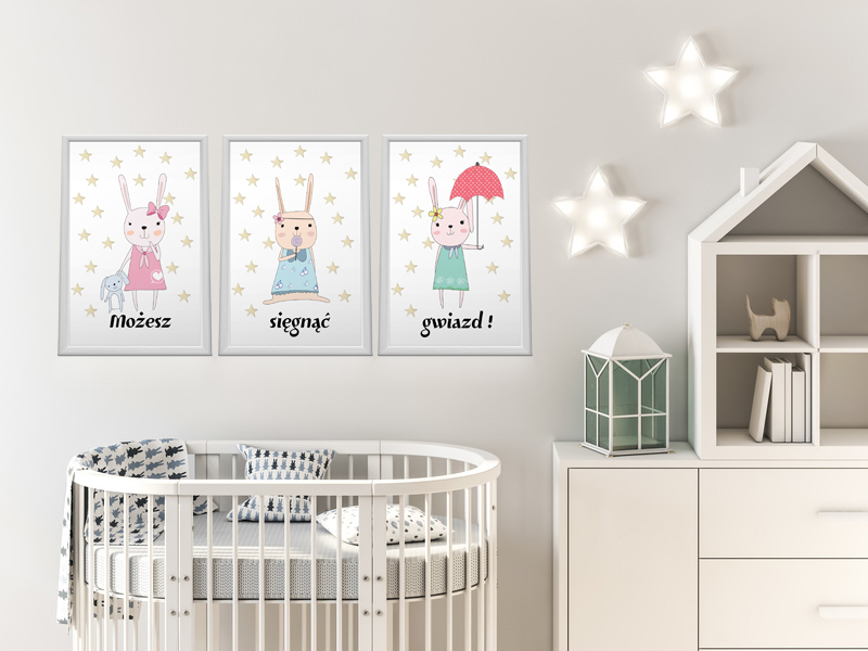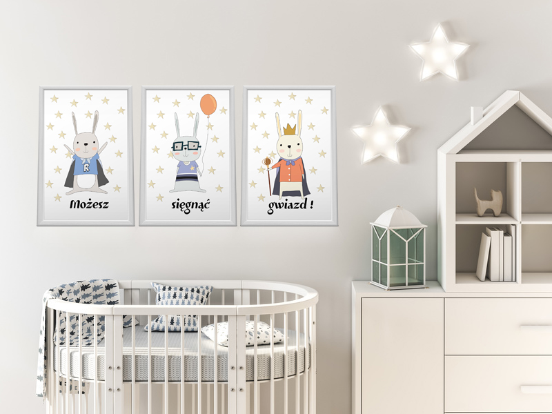 3 ПЛАКАТЫ, Кролик, ТРИПТИХ А4 + РАМКА в Подарок Картину