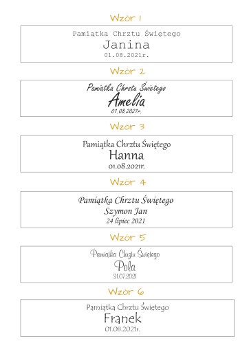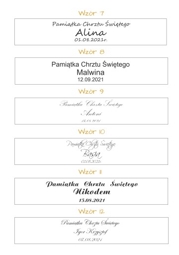 Профіткавін виготовлений з високоякісної бавовни і його можна легко випрати, якщо він забрудниться. Отримано прибутокбавовняне полотно, підшитийбавовняне мереживо. Прикрашений білою стрічкою і тримаєпришита гумка, щоб вона не зісковзувала зі свічки. На значку є вишивка, яка складається з назви дати хрещення та одного з 15 доступних мотивів.