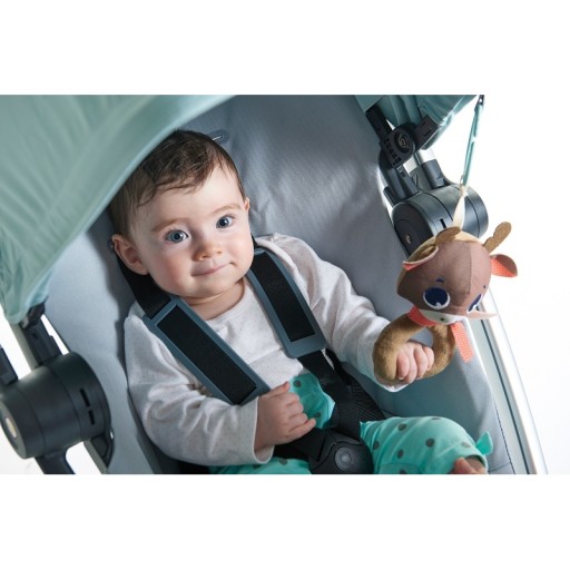 Північний олень Алекс має кільце, за допомогою якого ви можете прикріпити іграшку до автокрісла або коляски, це дозволяє брати його в подорож, завдяки чому він може бути з вашим малюком всюди, забезпечуючи йому відчуття безпеки.