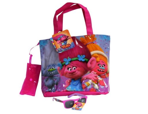Ваша дитина цінує шарм і стиль? А може він любить казку Тролі? Ця сумка була створена спеціально для неї. Він ідеально завершить будь-яку стилізацію маленької принцеси і стане чудовим подарунком на будь-яке свято. Лакований принт із зображенням принцеси Поппі та інших тролів надає сумці неповторного шарму. До сумки додається чохол, всередині стильні окуляри. Сумка ідеально підійде для пляжу і не тільки. Вміщує пляжний рушник, окуляри, шльопанці, улюблену ляльку тощо (формат А4). Сумка виготовлена за оригінальною ліцензією DreamWorks Animation. Бренд подбав про високу якість матеріалів і точність виконання. Сумка на блискавці з одним відділенням і лямками.