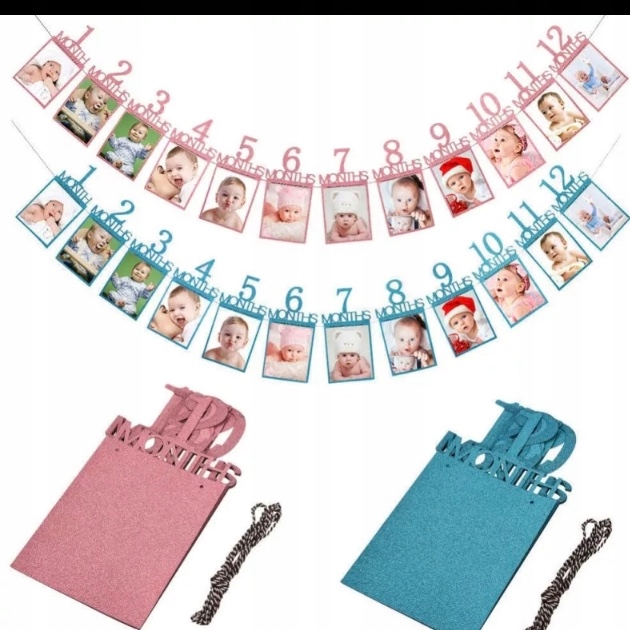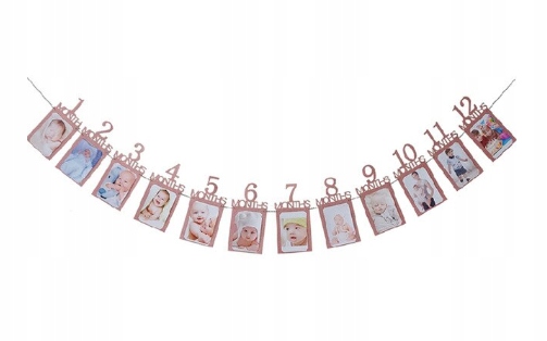 Aukcja dotyczy widocznej na zdjęciu ozdoby do samodzielnego umocowania na niej zdjęć od pierwszego do dwunastego miesiąca życia dziecka i nawleczenia ich na sznurek, który również jest w zestawie i do zawieszenia.