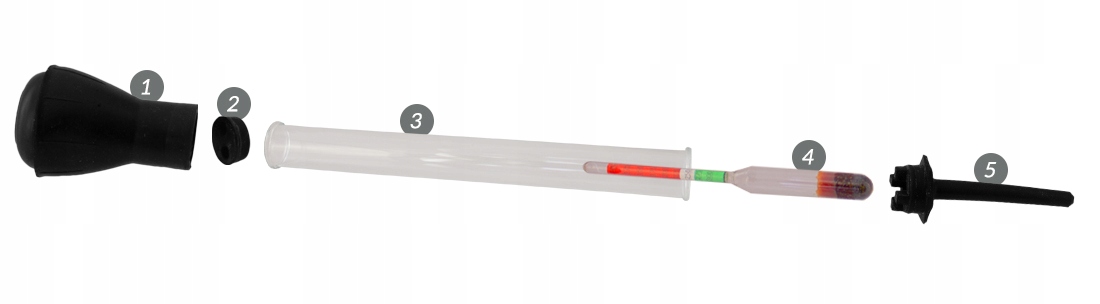 - Pływak, miernik ze skalą gęstości cieczy.