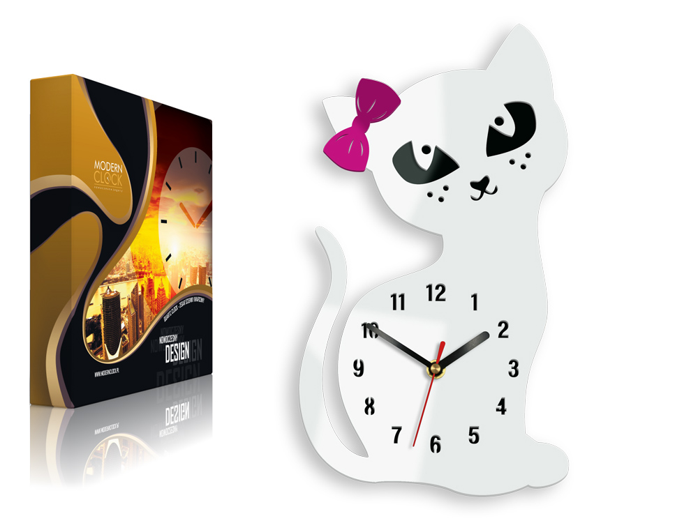 НАСТЕННЫЕ ЧАСЫ УЛЬТРА ТИХИЙ КОТЕНОК БЕЛЫЙ