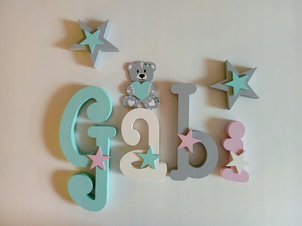 Przedmiotem sprzedaży są piękne ,ręcznie malowane i ozdabiane finezyjnymi dekorami z sklejki literki z, których możesz stworzyć imię twojego dziecka.