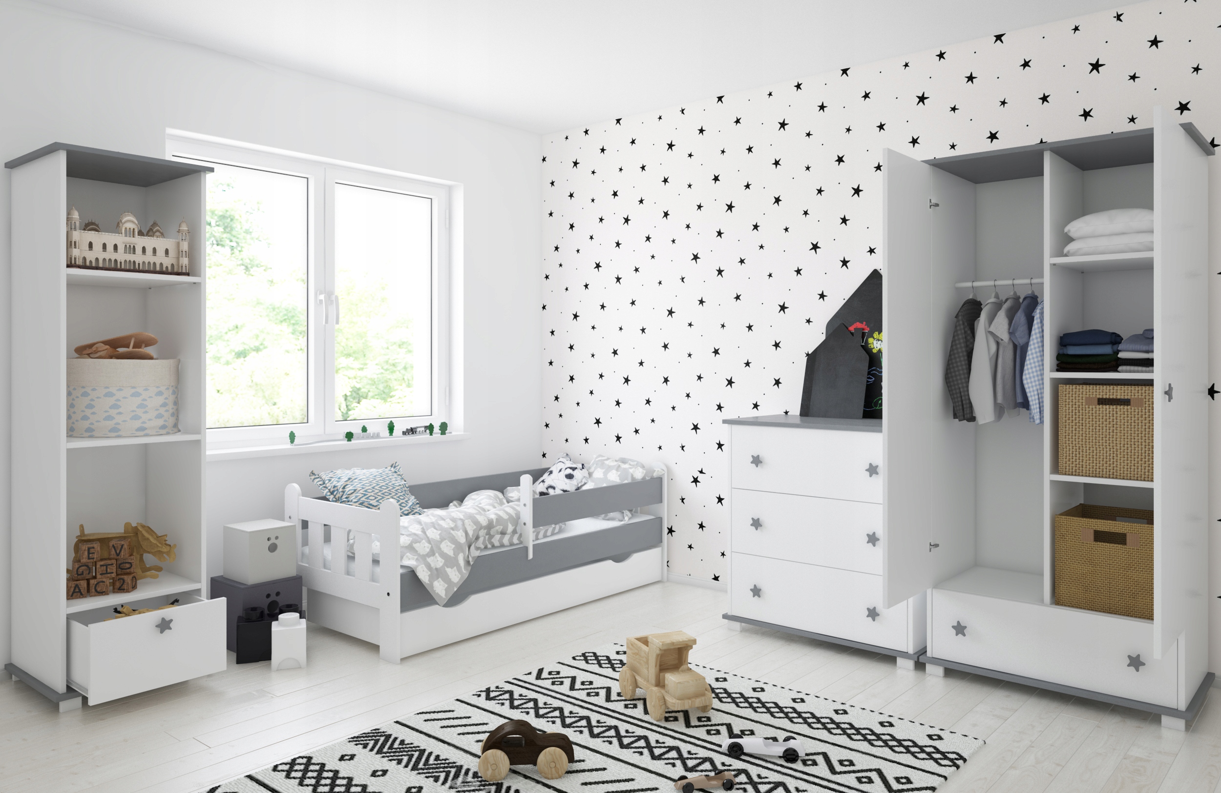 Zastosowane rozwiązania umożliwią funkcjonalne i komfortowe przechowywanie dziecięcej garderoby i dodatków.