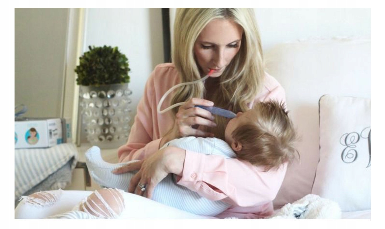 tuby oraz wężyka z zatyczką. Aby oczyścić nos dziecka wystarczy wciągnąć powietrze przez ustnik. Oprócz aspiratora opakowanie zawiera wymienne filtry higieniczne.
