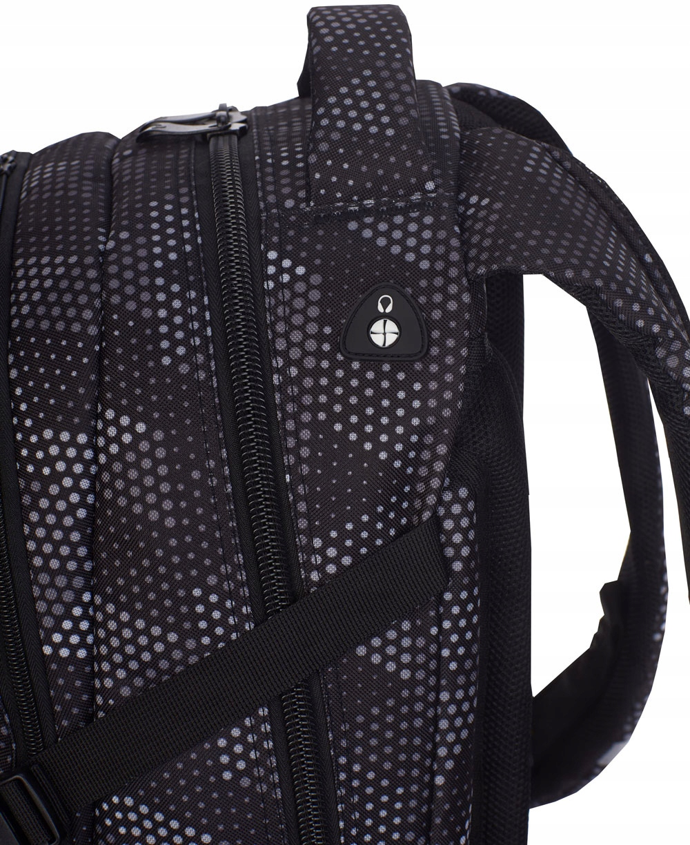 Duży, pojemny plecak z 3 komorami, organizerem. Wykonany z bardzo dobrej jakości materiałów. Materiał wodoodporny. Posiada wiele udogodnień takich jak: kieszeń na telefon, organizer i wyjście na słuchawki. Dzięki ergonomicznej budowie pleców oraz szelek plecak nosi się niezwykle wygodnie, a dzieciom pomaga w pilnowaniu poprawnej postawy. Cały plecak oraz jego poszczególne części takie jak zamek błyskawiczny, uchwyty, kieszonki są wykonane starannie i z trwałych materiałów, co zapobiega wszelkim zniszczeniom. Modny, uniwersalny wzór, dekoracyjne naszywki oraz elementy odblaskowe.