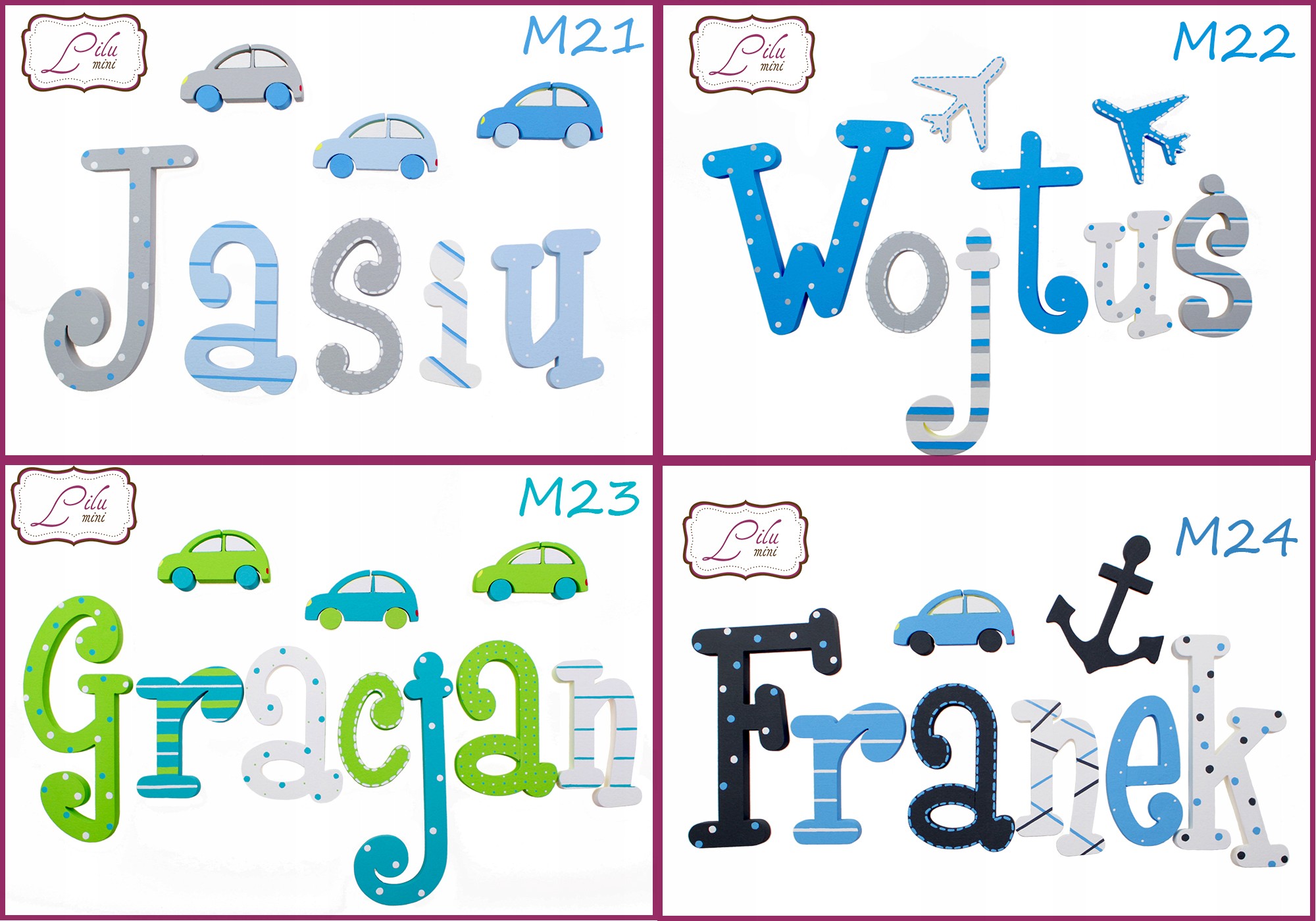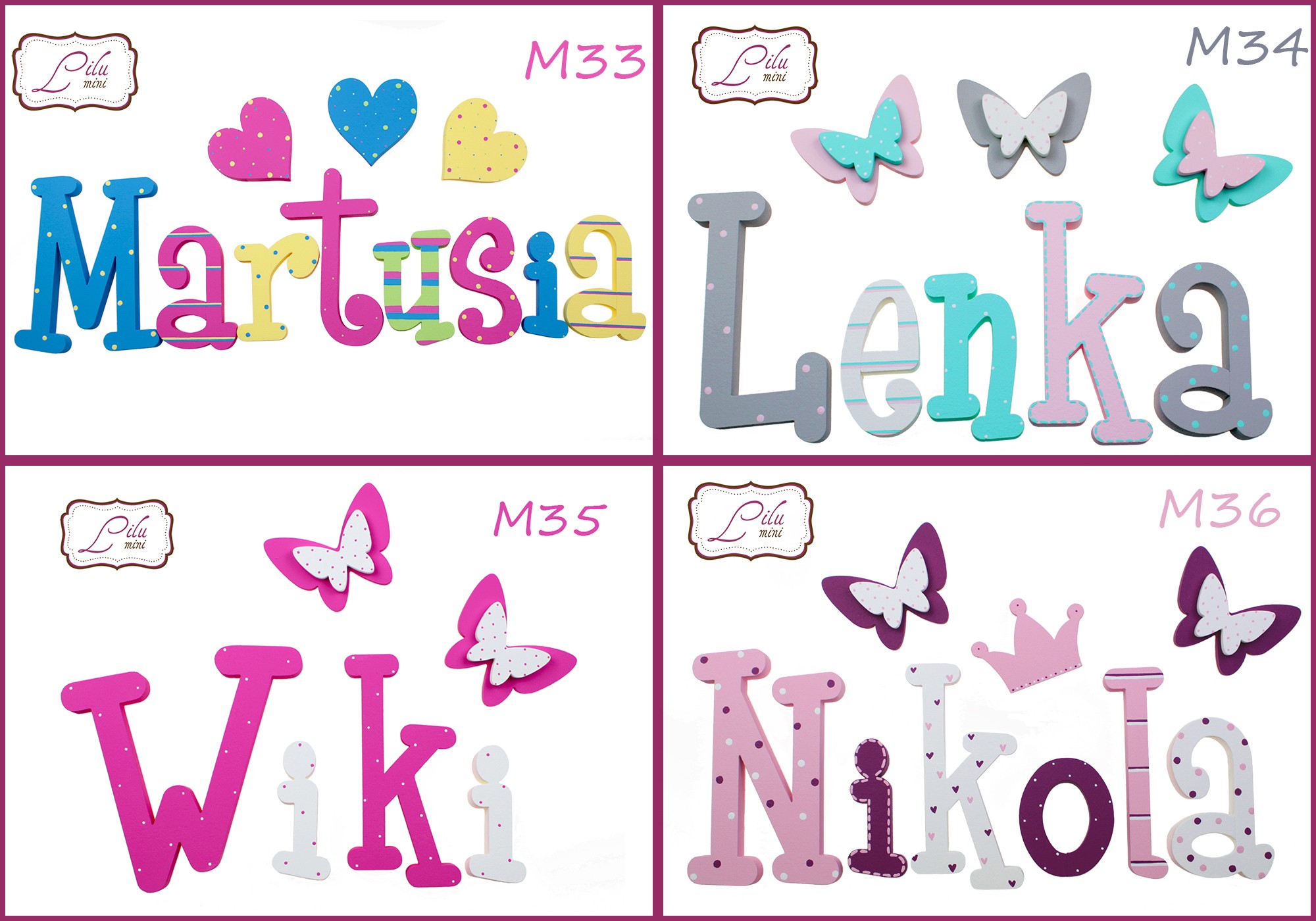 - W wiadomości dla sprzedającego podaj nam : imię które zamawiasz, nr wzoru który wybrałeś i rodzaj dekorów ( np.: Zamawiam imię Ania, wzór nr M34 + 2xmotylek i 1 serce lub : Zamawiam imię Leoś, wzór nr M26 + 3xsamolot)