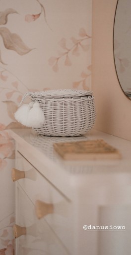 Скринька повністю виготовлена вручну з лози найвищої якості з польських ферм. Він пофарбований в білий колір спеціальною екологічною фарбою, яка дуже стійка до пошкоджень. Наші фарби сертифіковані PZH і можуть використовуватися для фарбування дитячих іграшок та меблів.