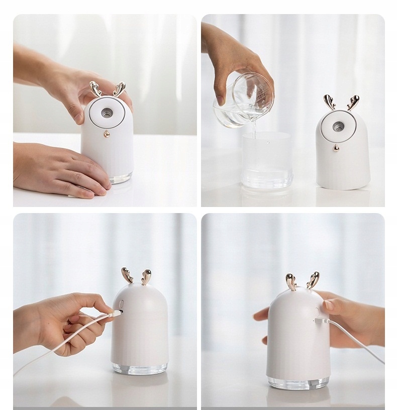 Wyjątkowo uroczy ultradźwiękowy nawilżacz powietrza idealny do twojego domu. Korzystanie z niego jest banalnie proste,wystarczy jedynie odkręcić górę i nalać przefiltrowanej wody do pojemnika.. Używanie nawilżacza w swoim domu przynosi wiele korzyści zdrowotnych związanych z oddychaniem czy skórą.