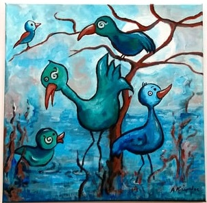 Оригінальний малюнок птахів птахи птахи ніч акрил
