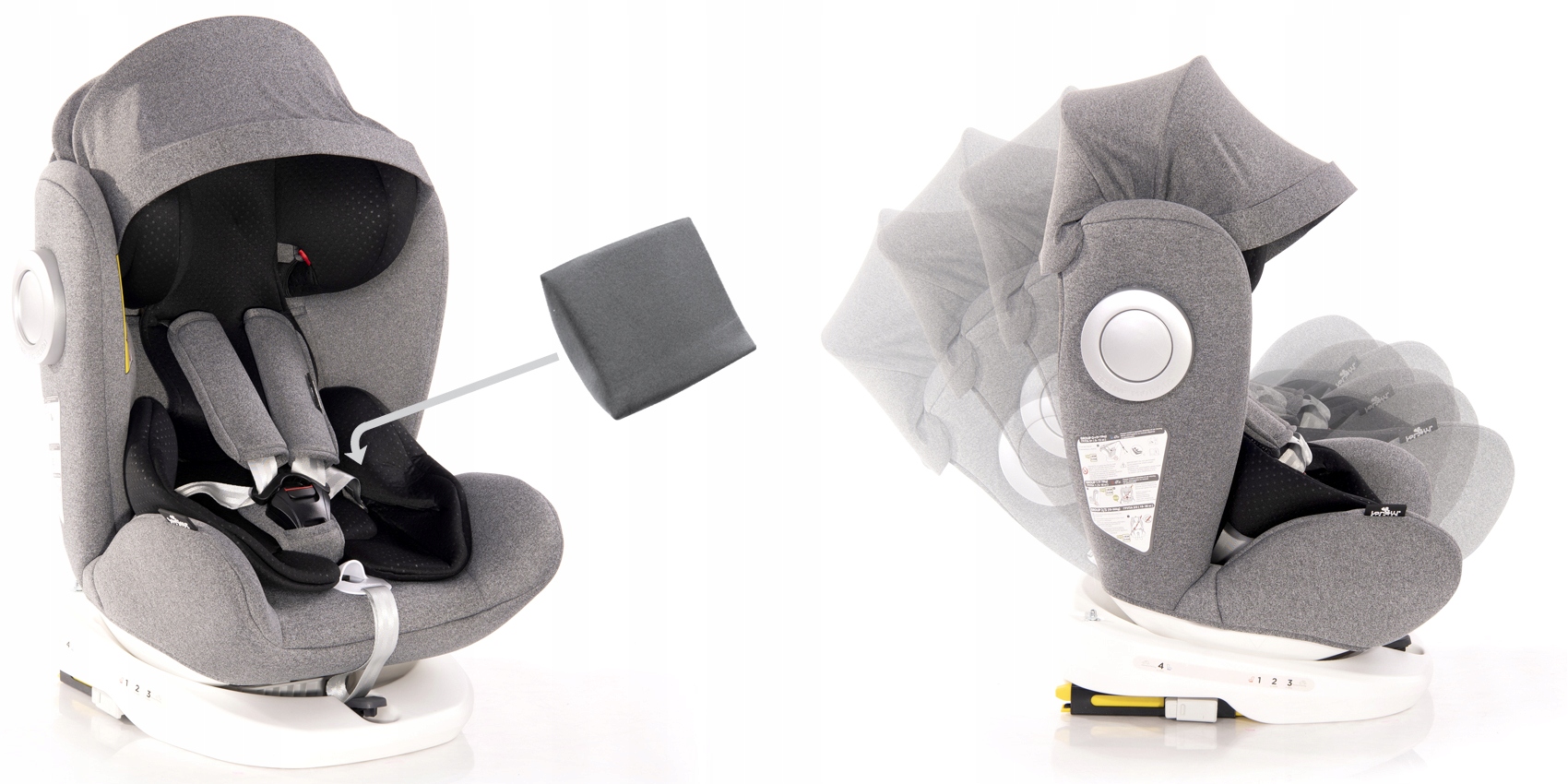 Zastosowanie unikalnej technologii sprawia, że fotelik można swobodnie obracać dookoła własnej osi bez konieczności wypinania z prowadnic. Obracając fotel w stronę drzwi samochodu można wygodnie i bez wysiłku prawidłowo umieścić maluszka w foteliku.