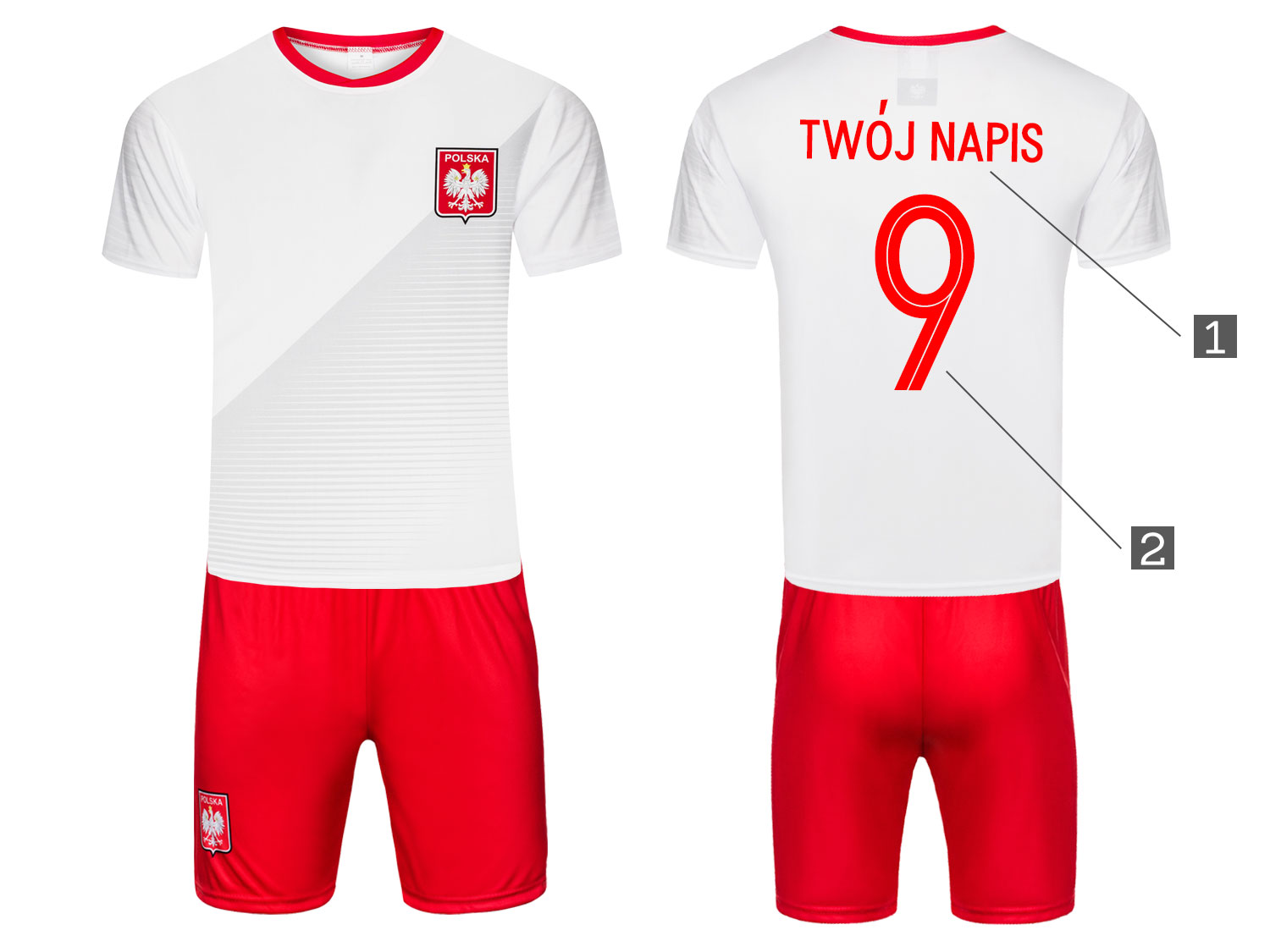 Костюм футбол ПОЛЬША + гетры СОБСТВЕННЫЙ ОТПЕЧАТОК - 104