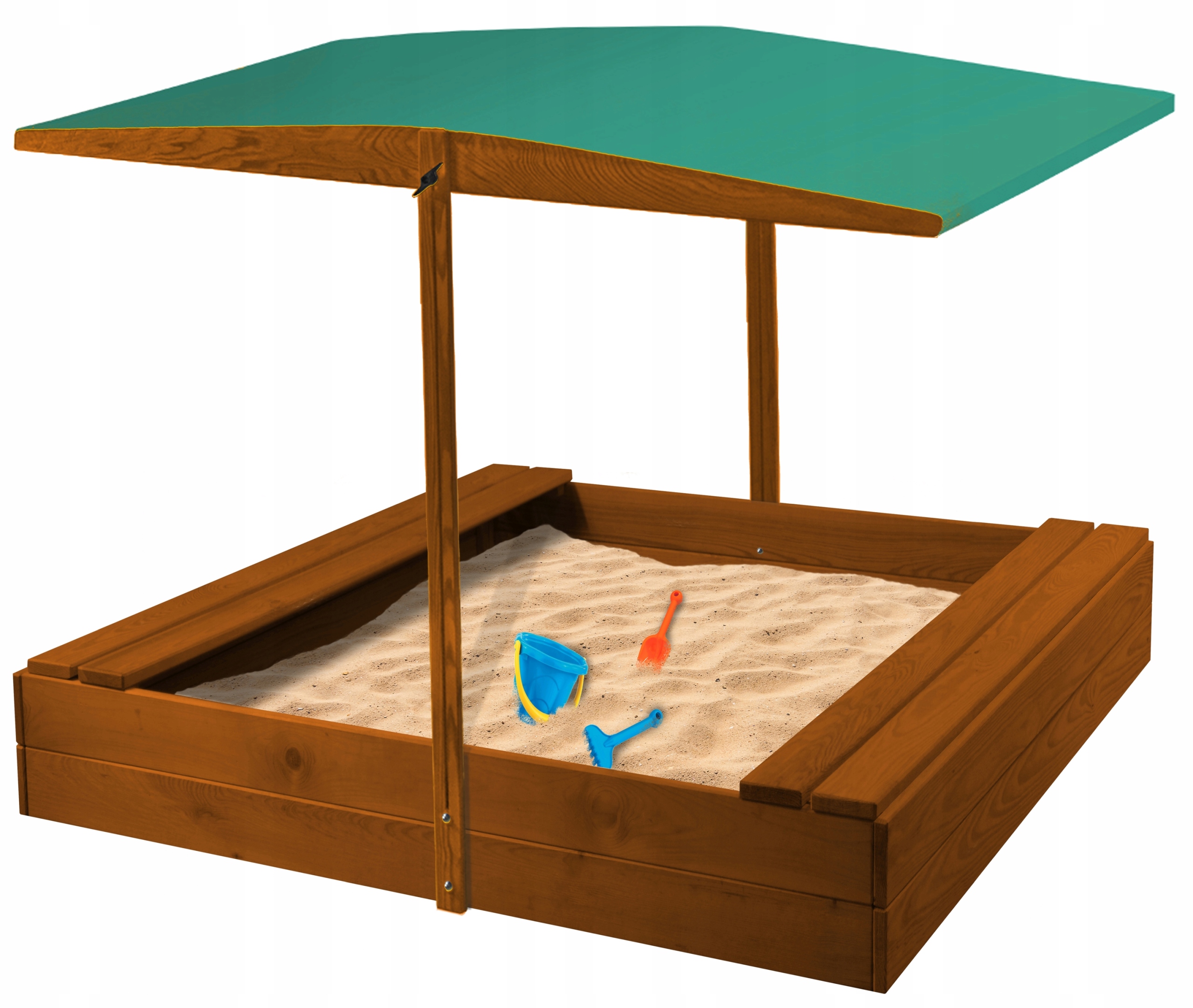 Piaskownica jest łatwa w montażu. Daszek posiada regulację nachylenia oraz wysokości. Po całkowitym opuszczeniu, spełnia on funkcję pokrywy. Piaskownica prezentuje się ładnie w każdym ogrodzie.