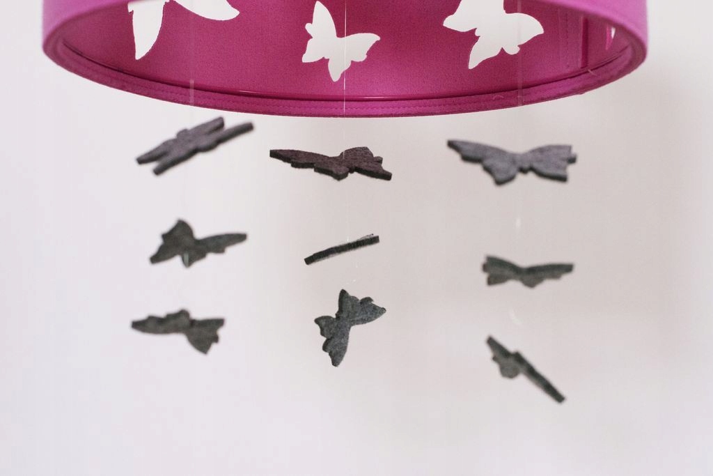 Подвесной светильник бабочки розовая с розовыми аксессуарами.