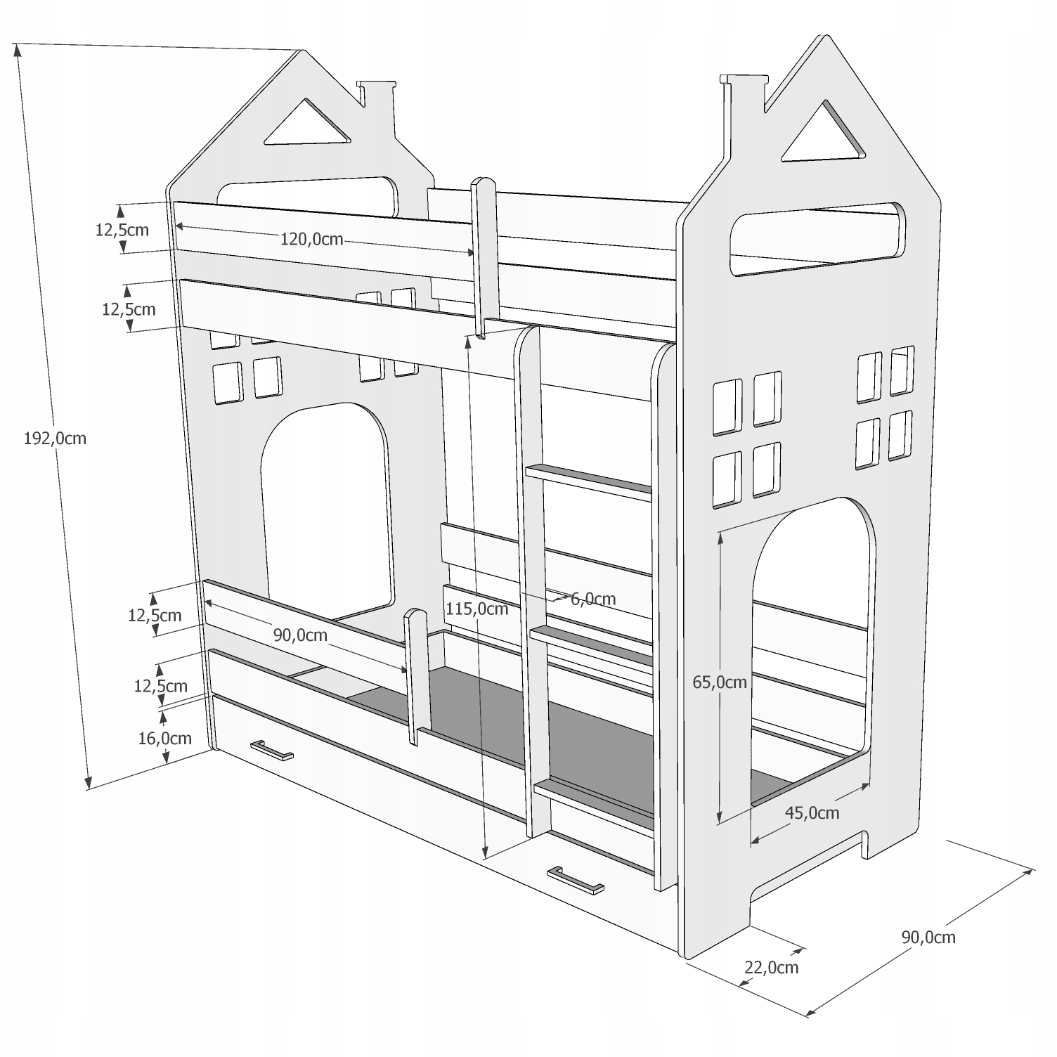 Двухъярусная кровать ДОМИК II 180x80 ящик + матрас