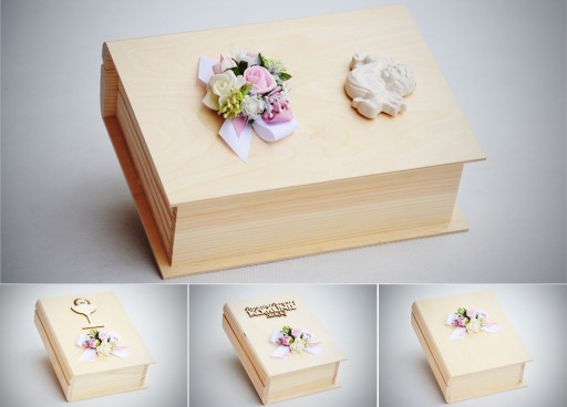 Коробка чудово підійде як подарунок до Першого Святого Причастя. У ньому будуть, серед іншого, сувеніри для причастя, книга, рани та Біблія.