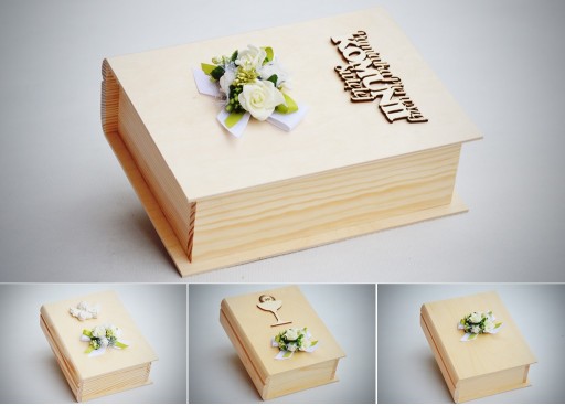 - елегантна дерев'яна коробка у формі книги з індивідуальним декором ручної роботи, розмір коробки 24х19х12 см.