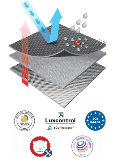 Висока якість, надійність і безпека ЛУУК підтверджені сертифікатами Lux Control і SNCH. Стенд відповідає директивам стандарту ECE R44.04. Крім того, продукт має розширену підтримку та пакет Lionelo Assistance