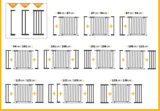 - Подовжувач не включає кріпильні гвинти. Розширювальні гвинти кріпляться до воріт Safety 1st, а при установці розширення використовуються гвинти воріт.