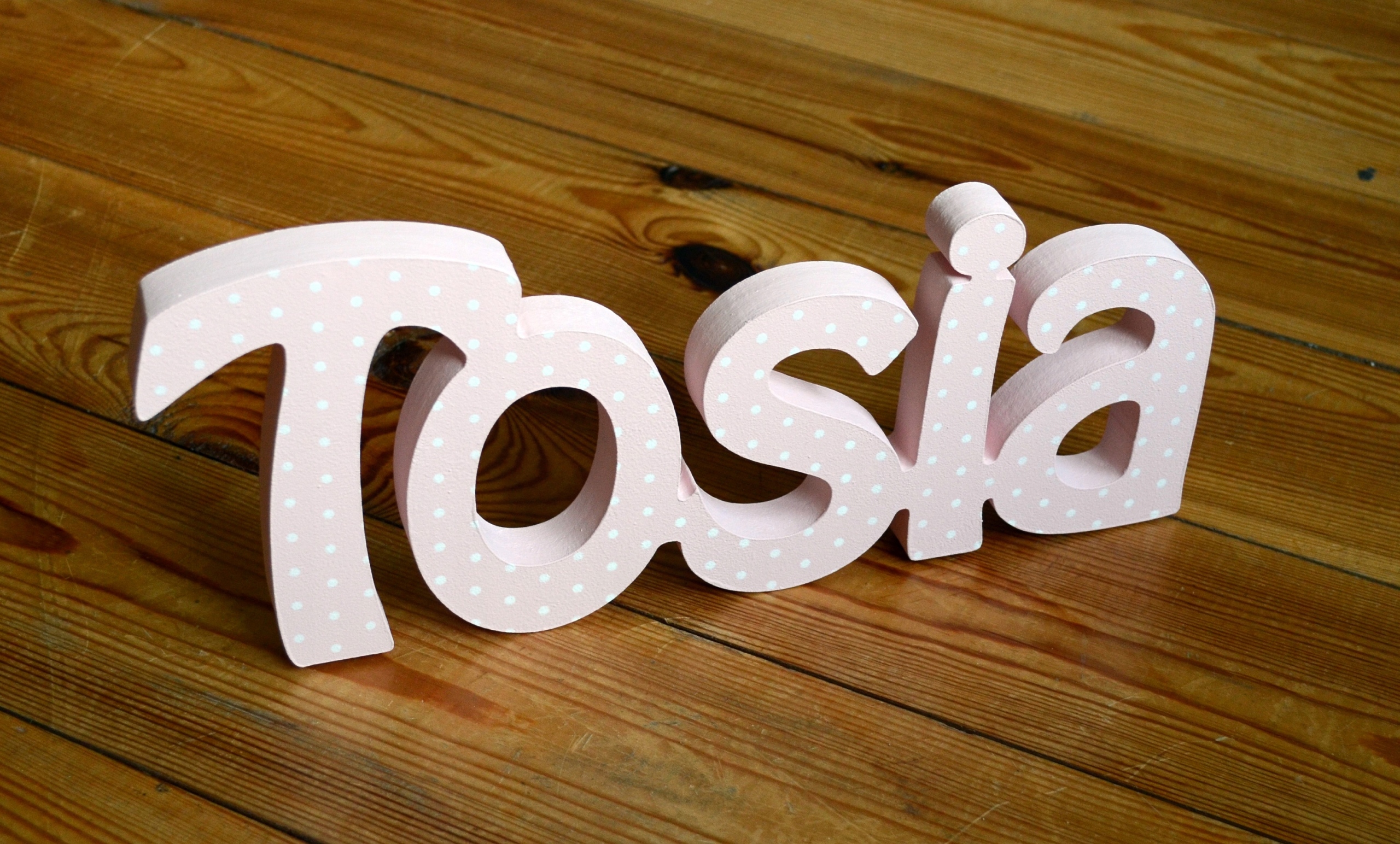 Przedmiotem sprzedaży jest: prostokąt z drewna - mdf, z którego wycinamy dowolną literę składającą się na napis - imię, w wybranej przez Państwa czcionce i kolorze.