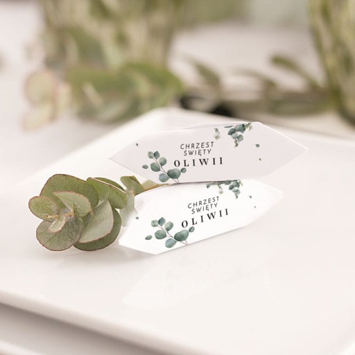 - Помадки дуже смачні від польського виробника. Помадка упакована в красиву мінімалістичну упаковку з зображенням листя евкаліпта. Це дуже сучасна тема, яка сподобається вашим гостям! Фаджі є місце для персоналізації імені дитини. Це ідеальна пропозиція для подяки гостям, які прийшли на свято хрещення.
