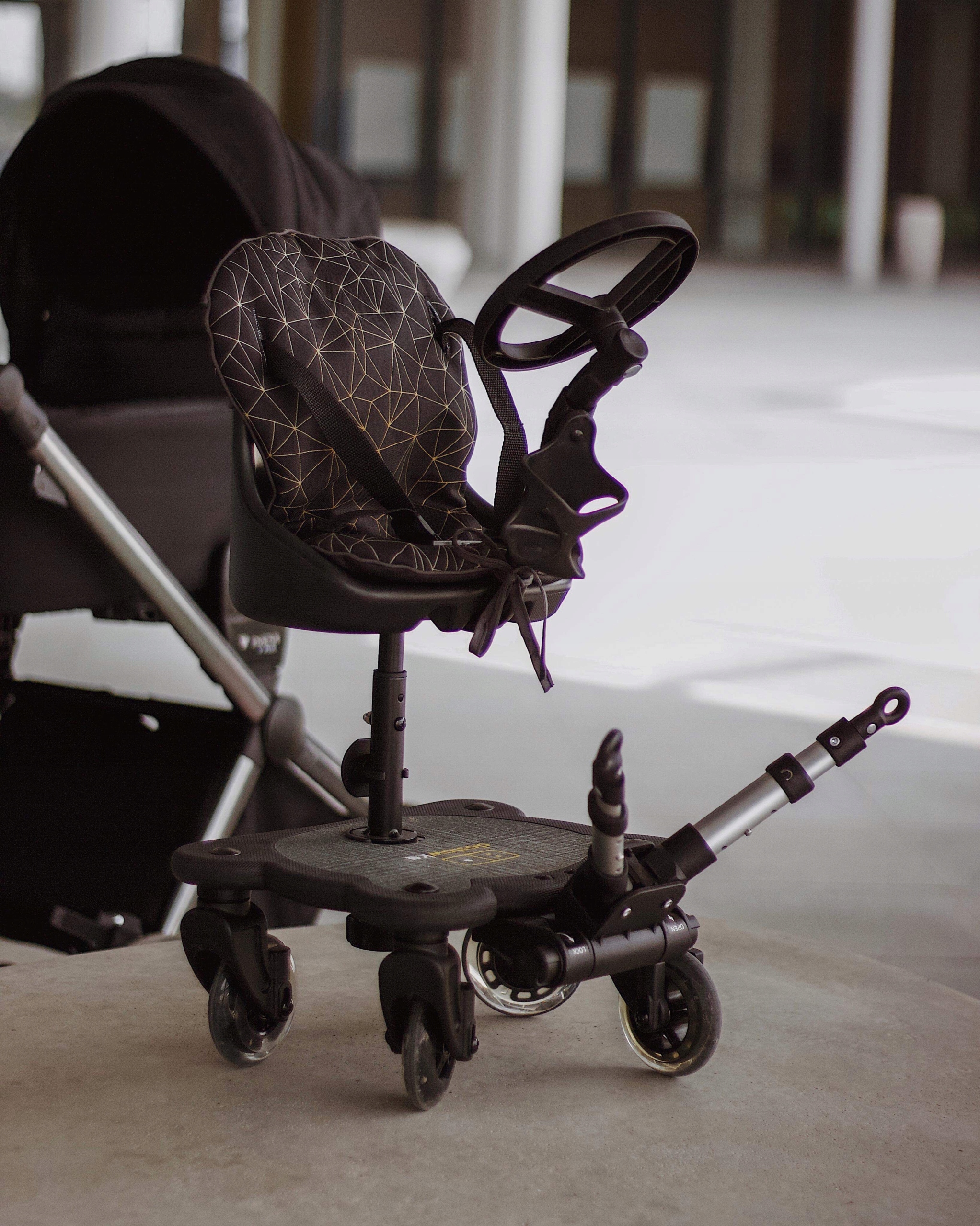 - The large anti-slip surface of the platform reduces the risk of the child slipping on the platform and reflective elements for additional child safety