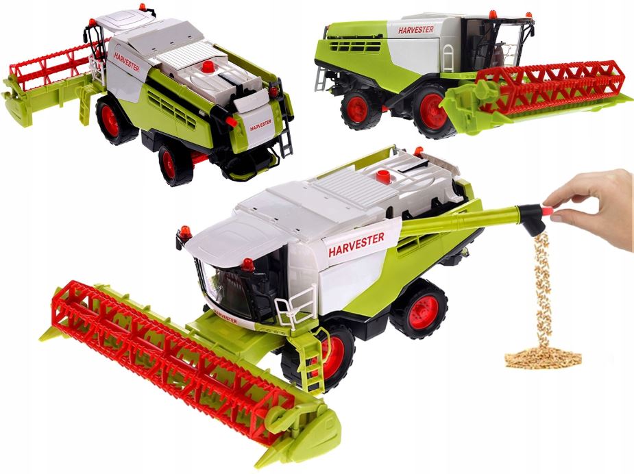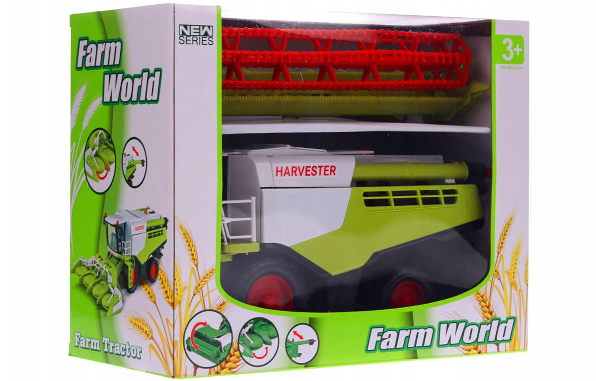 Traktory, kombajny i maszyny rolnicze to obiekt fascynacji niejednego malucha. Zabawki z tej serii to idealna propozycja zarówno dla młodszych, jak i starszych dzieci. Duży kombajn posiada wiele ruchomych elementów oraz napęd na przednią oś. Posiada również zdejmowany heder i wózek do jego przewozu.