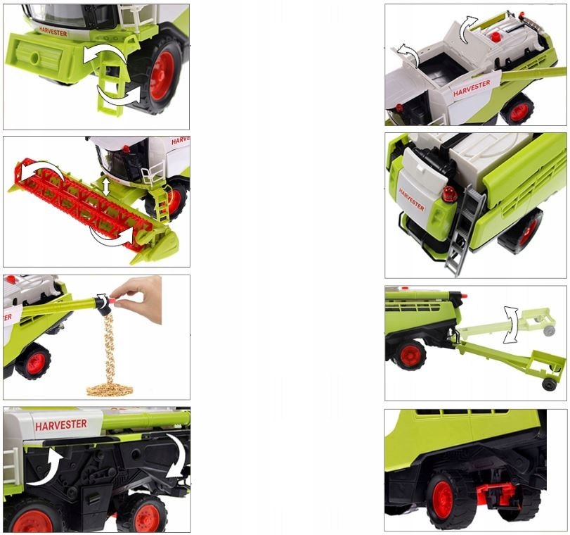 Kombajn posiada wiele ruchomych elementów. Wykonany został z jak największym odwzorowaniem szczegółów prawdziwego pojazdu.