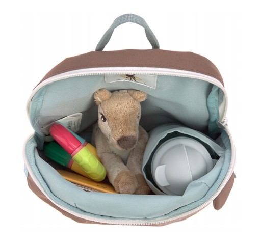 Досить містке основне відділення застібається на блискавку, має внутрішню кишеню для пляшки з напоєм і візитки, де можна написати ім'я дитини та контактний телефон батьків.