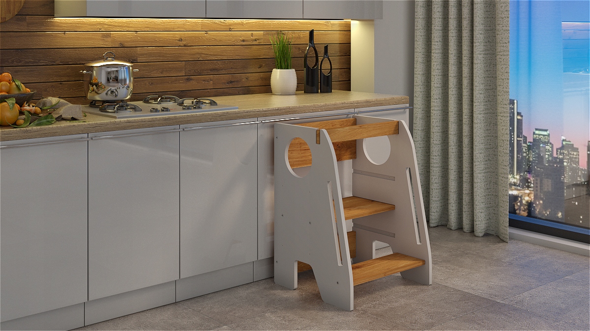 AUKCJA DOTYCZY POMOCNIKA KUCHENNEGO - KITCHEN HELPER, czyli mebla który umożliwi Twojemu Dziecku bezpieczną pomoc w kuchni.