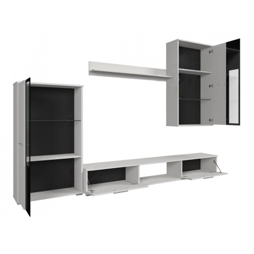 OSKAR - це комплект меблів, який доповнить простір вашої стильної вітальні. Дизайн вражає простотою форм і, в той же час, надзвичайним класом. Це згодиться! Завдяки своїм невеликим розмірам, стелька Оскар чудово впишеться у вітальню або молодіжну кімнату. Меблі виготовлені з високоякісного ламінованого ДСП, стійкого до подряпин, з кромкою ABS, що збільшує термін служби елементів у повсякденному використанні. Металеві петлі забезпечують точне регулювання. У набір входять 4 елементи. Підвісна полиця, тумба під телевізор, куди можна поставити телевізор, 2 скляні вітрини (підвісна і стояча). За бажанням усі з опцією світлодіодного підсвічування.