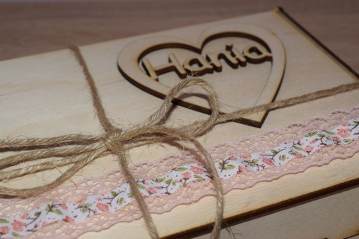Дитяча творчість з індивідуальним гравіюванням і декоративною дерев'яною коробкою з мереживними стрічками і 3D написом