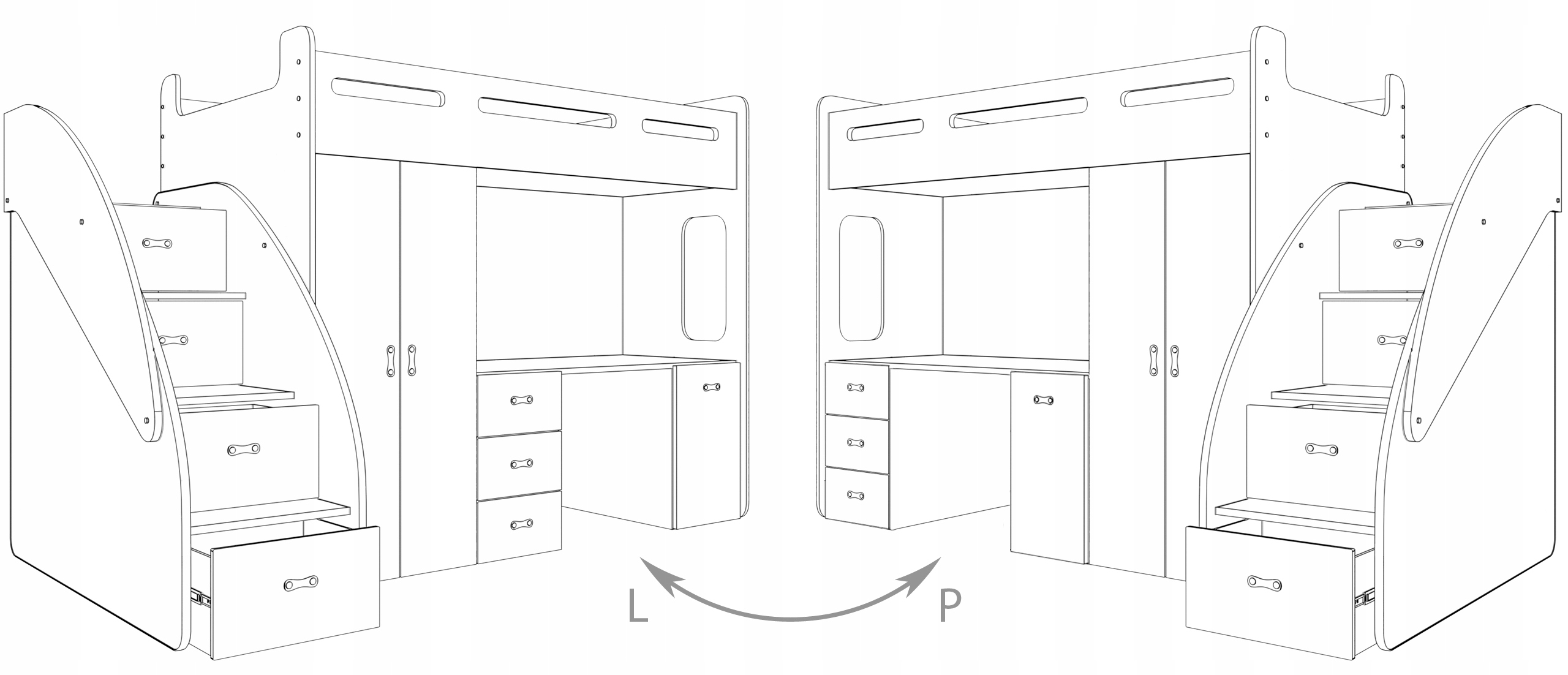 - Schodki z szufladami z dodatkową przestrzenią na przechowywanie.