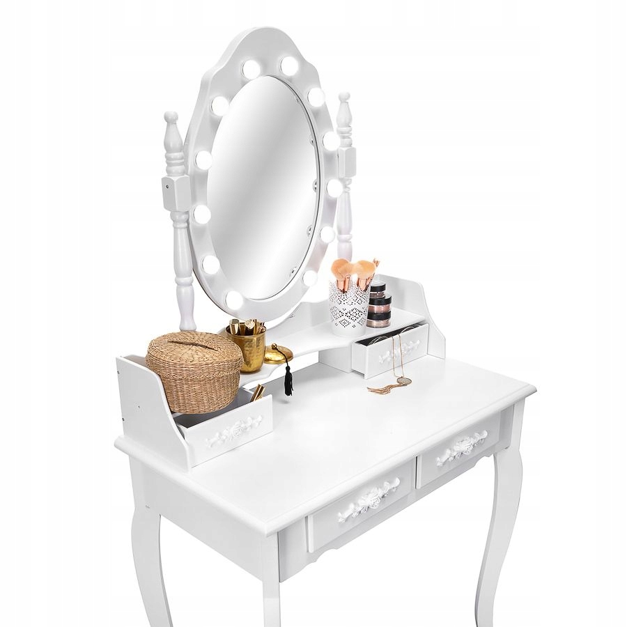 ТУАЛЕТНЫЙ столик и КОСМЕТИЧЕСКОЕ с ЗЕРКАЛОМ LED БЕЛЫЙ + ТАБУРЕТКА