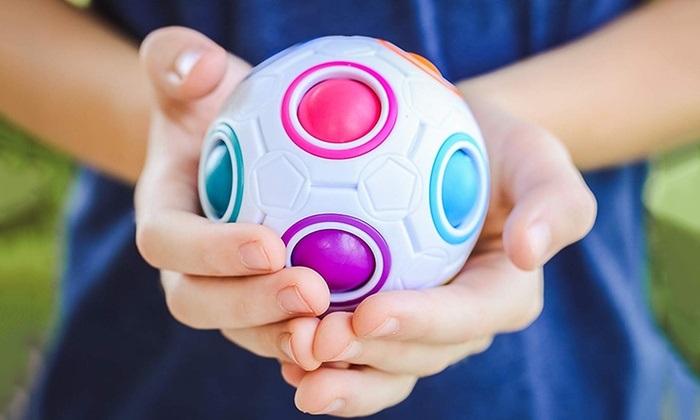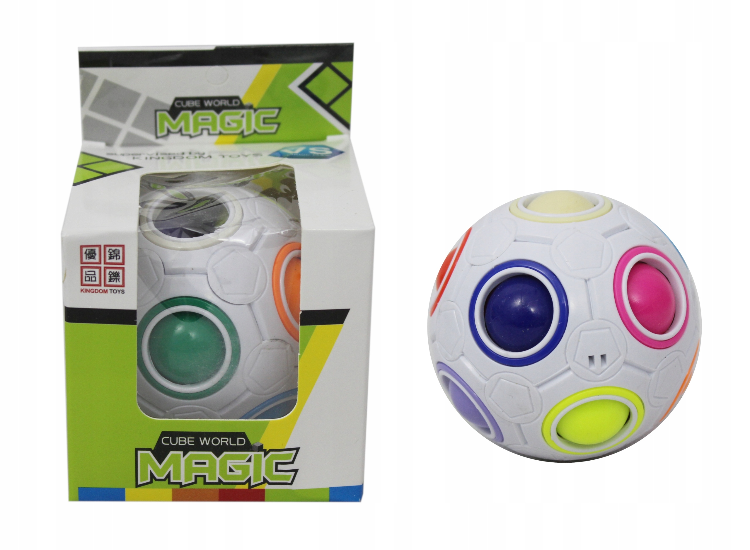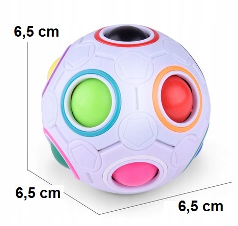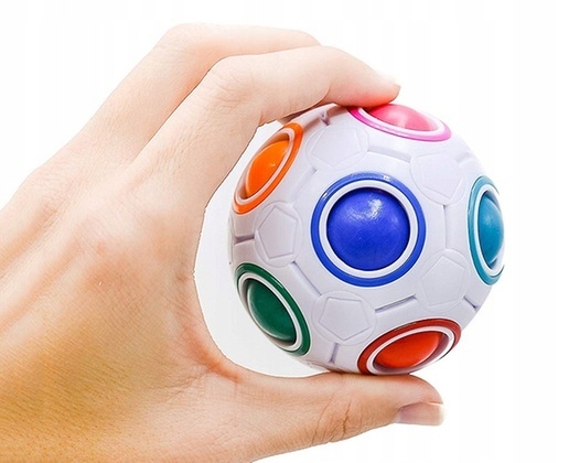 Zabawa polega na wciskaniu kolorowych kulek do środka kuli i przemieszczaniu ich do otworów z obwódką odpowiadającą kolorystyce kulki.