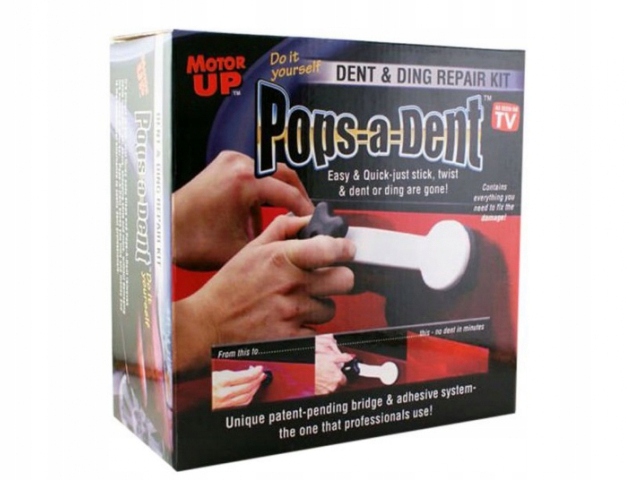 Fabrycznie nowy , wysokiej jakości zestaw naprawczy POPS-A-DENT. Przekonaj się sam, jak łatwo można przywrócić samochód do poprzedniego stanu używając prostego narzędzia, jakim jest POPS-A-DENT. Dzięki rewelacyjnemu POPS-A-DENT łatwo można wyprostować każde wgniecenie w samochodzie - zaoszczędź na prostowaniu karoserii w warsztacie!. Prezentowany zestaw usuwa 98% łagodnych wgnieceń oraz 95% wgnieceń o ostrych krawędziach.