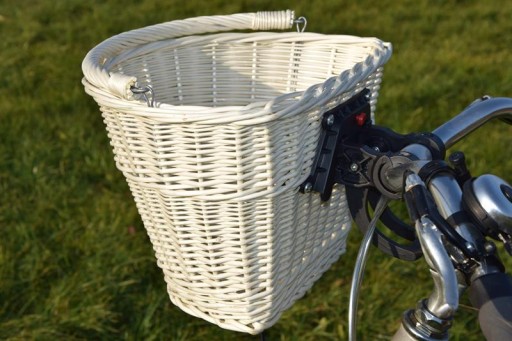 Плетений кошик для велосипеда CLICK білий плетений (НЕФАРБУВАНИЙ - білий з ніжним кремовим кольором)Кошик ідеально підходить для велосипедних поїздок і шопінгу. Ретельне виготовлення та міцна конструкція забезпечують безпечне та зручне перенесення покупок. Кошик розміщується на передній частині керма за допомогою клацання. Монтаж кошика за допомогою «CLICK» забезпечує швидкий монтаж і демонтаж кошика без використання додаткових інструментів.