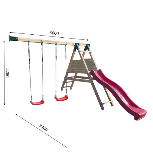У набір входить: дерево, 2 шт. потрійного з'єднувача, 1 шт. кріплення для вежі або будиночка, 4 гойдалки, 2 гойдалки
