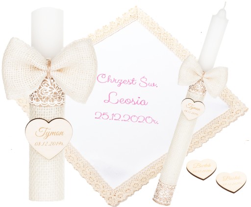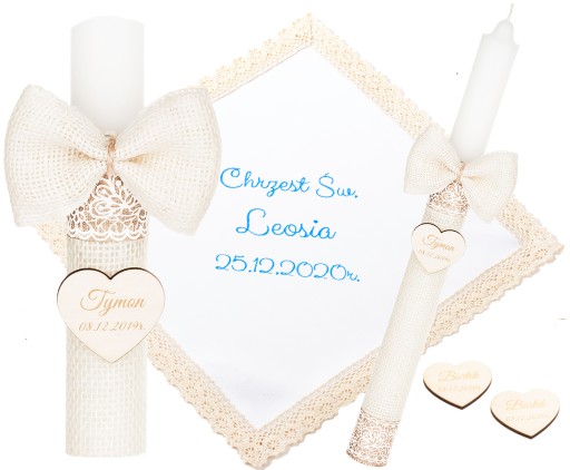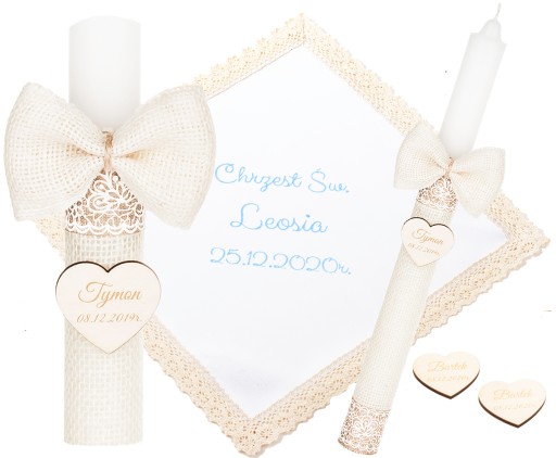 Додатково - до кожного придбаного набору ми додаємо в подарунок 2 кулони з гравіюванням імені дитини та датою хрещення (як на свічці). Їх можна прикріпити до подарунка або залишити батькам і дитині на пам'ять :)