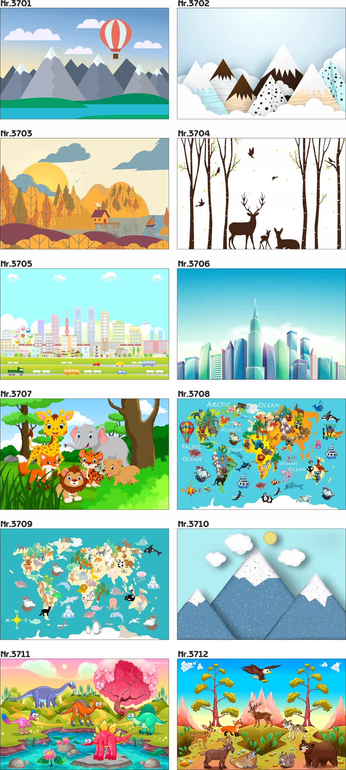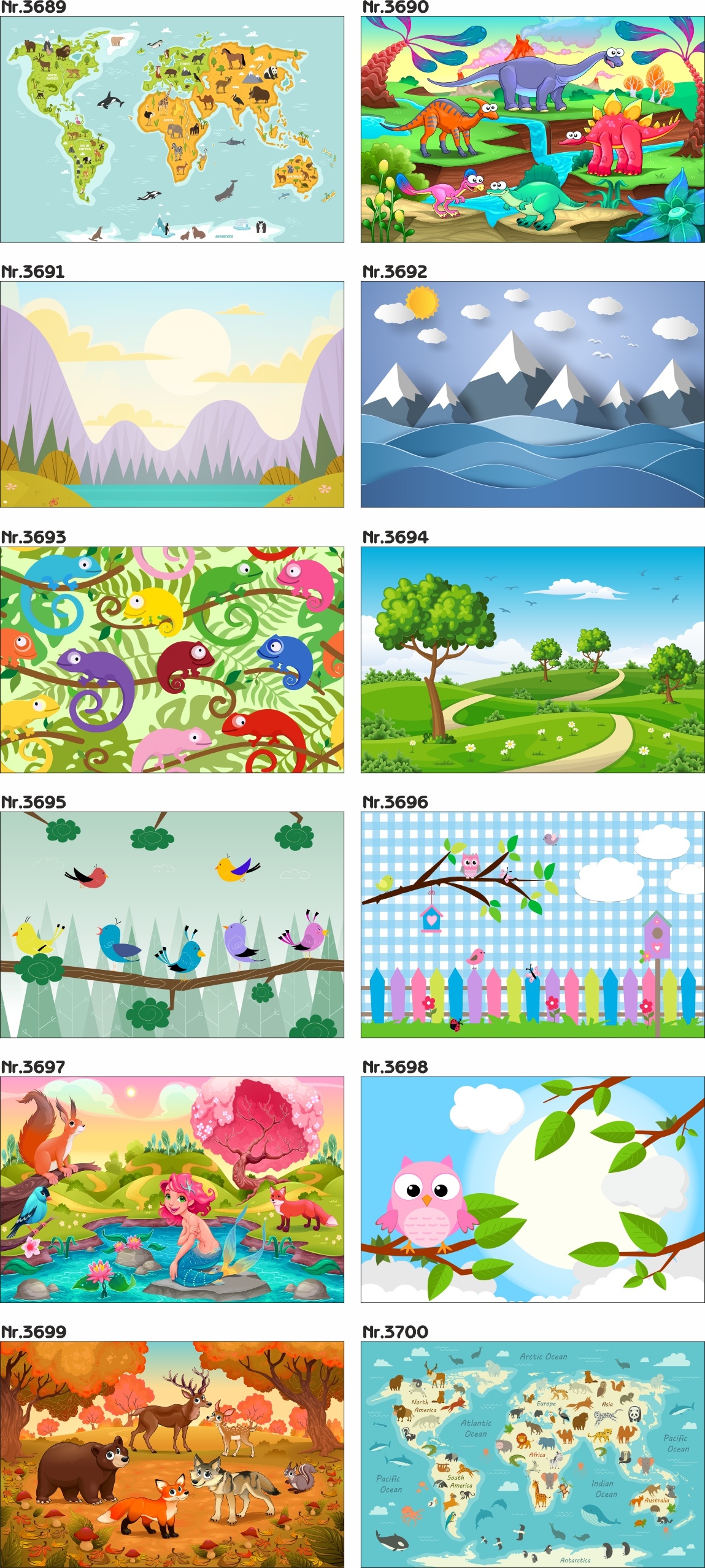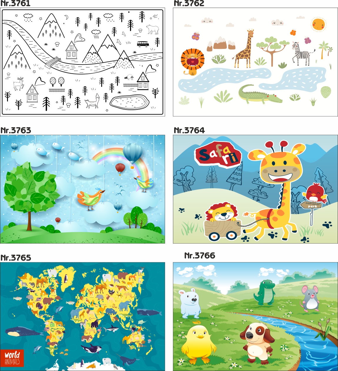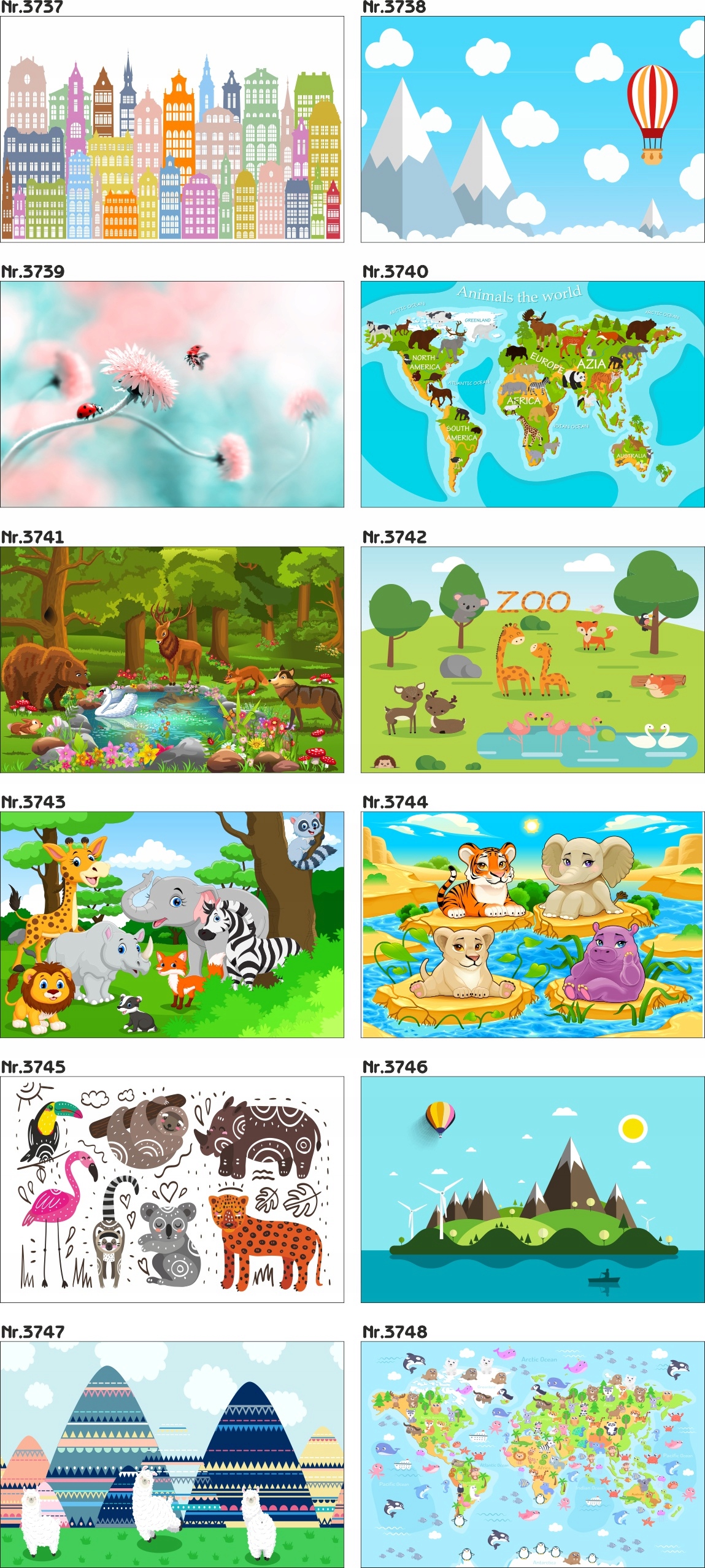 Настенные фрески для детей " карта мира животные ocean