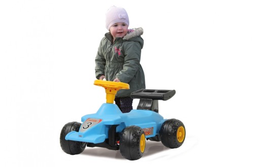 Дитина самостійно керує атракціоном, сидячи за кермом і відштовхуючись ніжками. Дякуюкермоіповоротні колесадитина крім водіння довпереді доззадувін також може обертатисяправильноізліва.