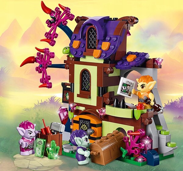 W Elvendale szykują się nowe, niezwykłe przygody! Zajrzyj do wioski goblinów, w której znajdziesz trzy naszpikowane akcesoriami budynki, w tym warsztat kryształów ze szkłem powiększającym i obrotową platformą, warsztat produkcji klatek ze stanowiskiem obserwatora i loch, który ma funkcję wysadzania bramy włączaną przez pociągnięcie za roślinę.