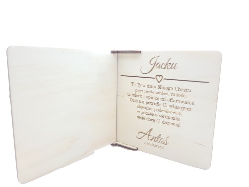 Дерев'яна подячна записка для хрещеника з гравіюванням - унікальний спосіб виразити вдячність за турботу, підтримку і любов, подаровану хрещеника в день його хрещення. Виготовлений з дерева, він виглядає елегантно і довговічно.