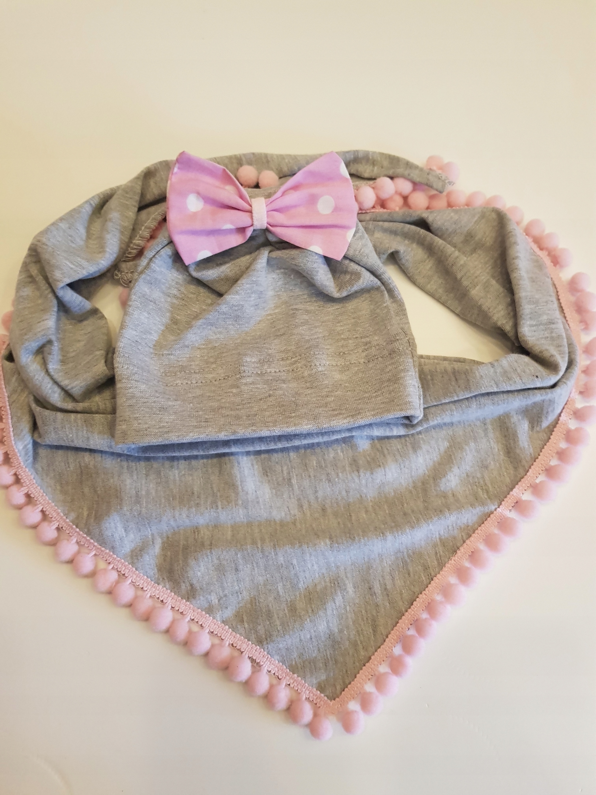 КОМПЛЕКТ ШАПКА БАНТ+ ПЛАТОК POMPONIKI 0-3 ЛЕТ 3KOL