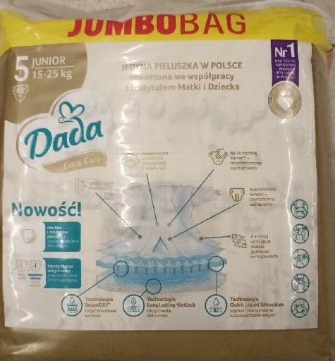 Використання інноваційної технології Secondry робить підгузки до 2 разів сухішими порівняно з попереднім варіантом Dada extra care.